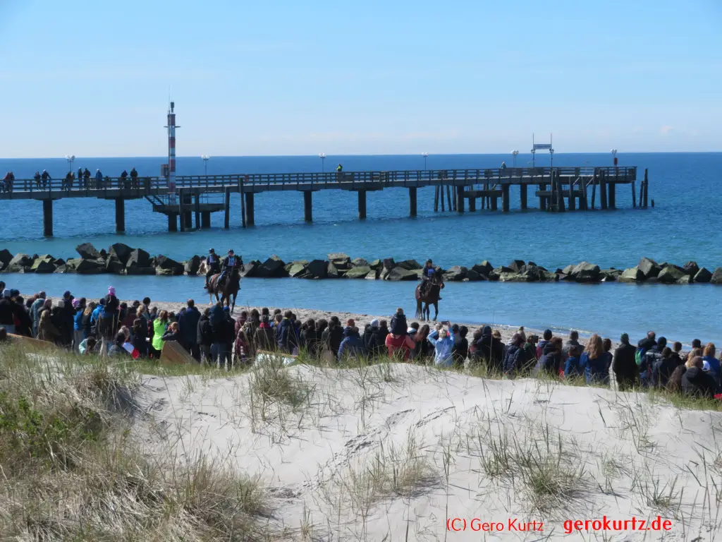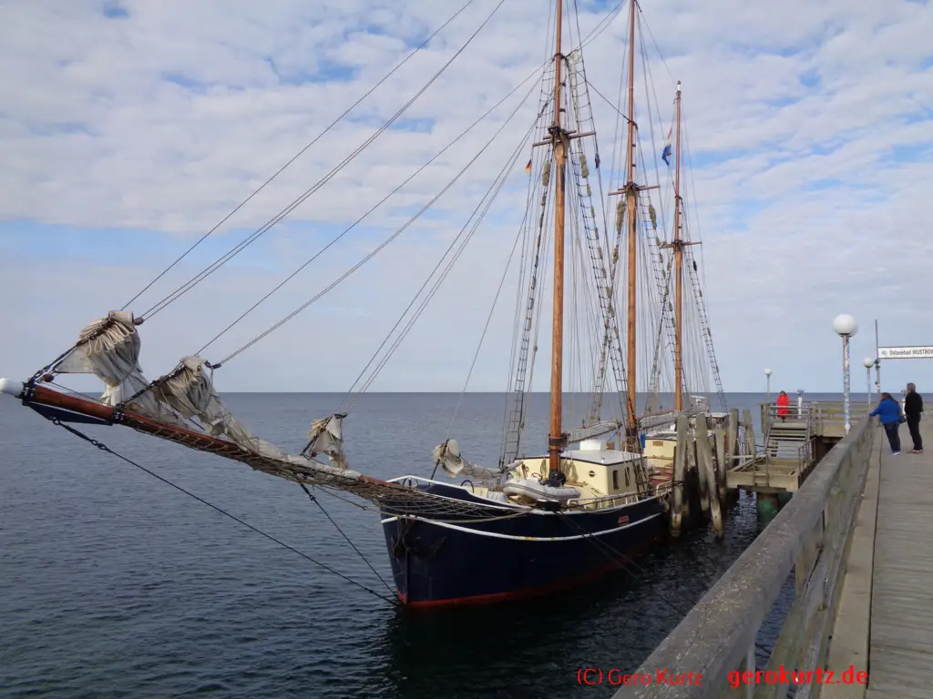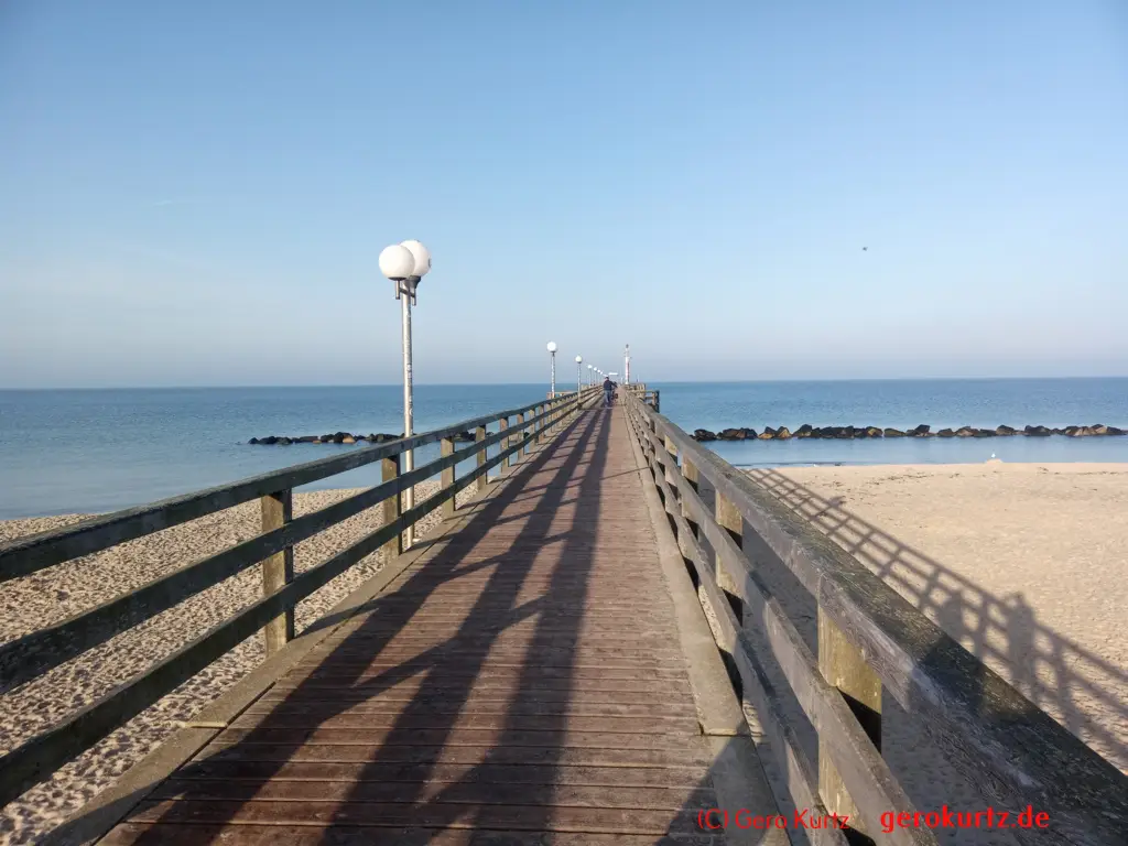 An der Ostsee lädt die Seebrücke ein, einen Gang bis weit auf die Ostsee zu wagen. ↓