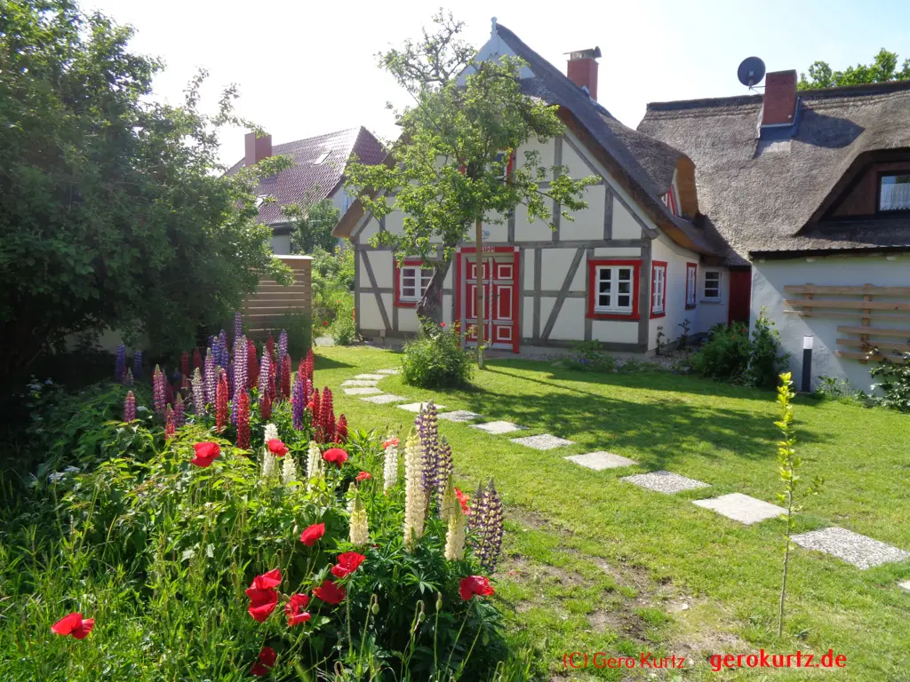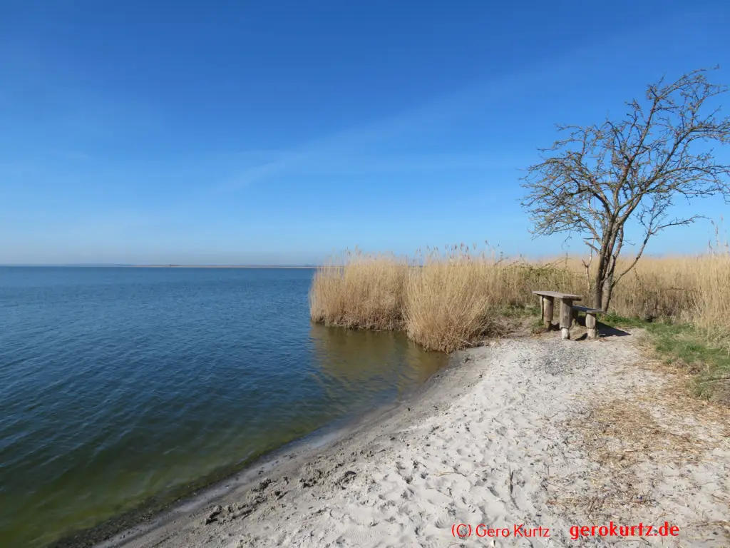 Zudem solltest Du ohnehin einen Ausflug nach Barnstorf machen. Hier gibt es malerische Natur, blühende Felder und Wiesen, alte Häuser und einen kleinen Strand am Bodden. ↓