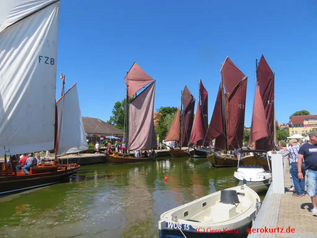 Der Boddenhafen lädt zum Verweilen ein. Besonders sehenswert sind hier die alten Zeesboote mit den großen braunen Segeln. Im Juni finden hier auch zwei Regatten statt. Mit dem Fahrgastschiff ist es möglich eine Boddenrundfahrt zu machen oder direkt nach Ribnitz zu fahren. ↓