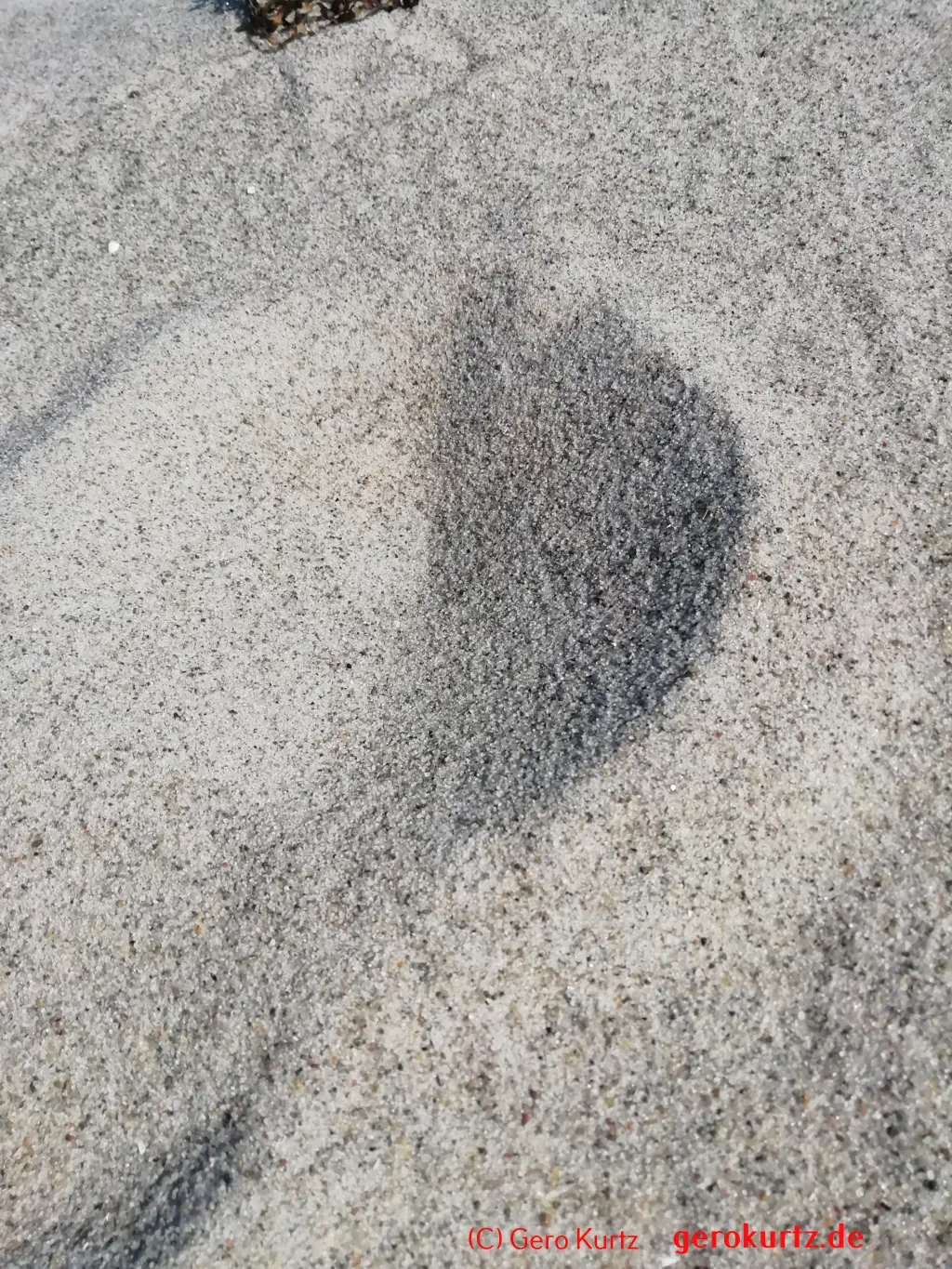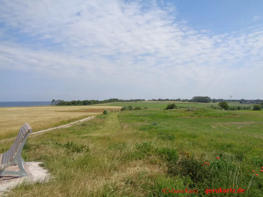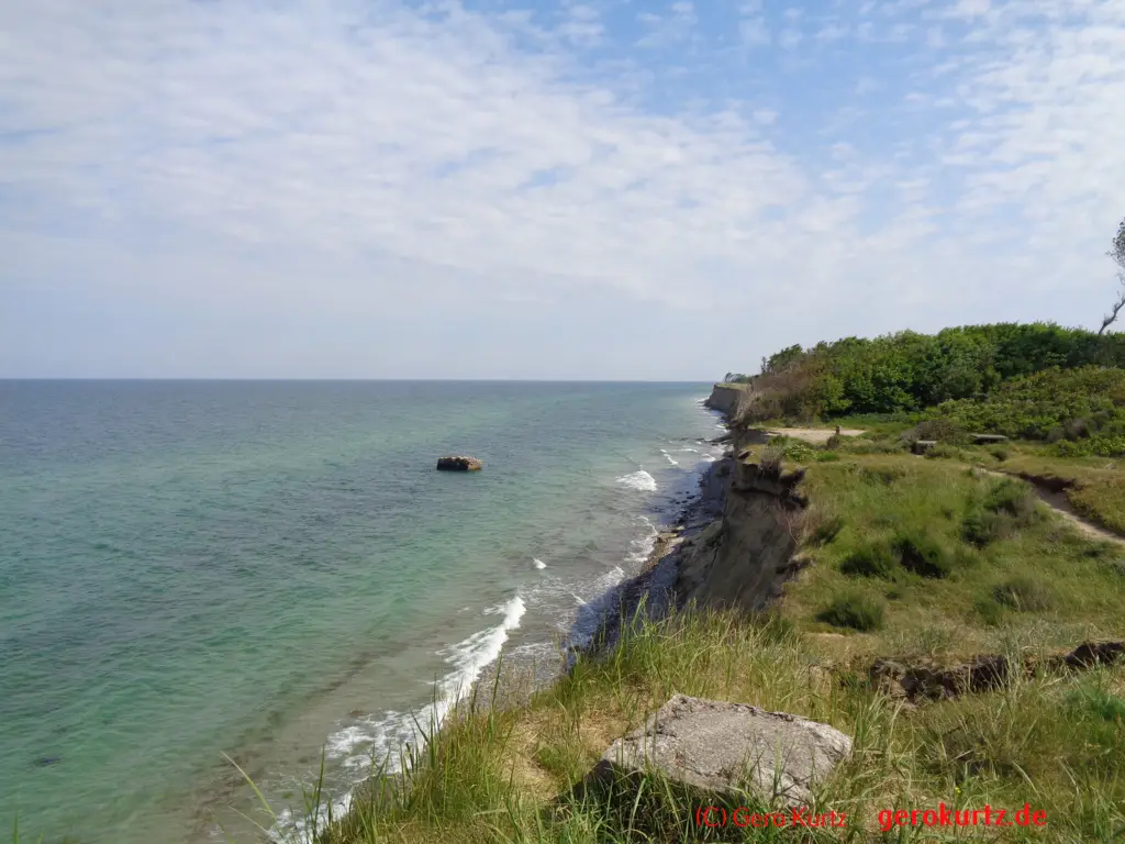 Das Hohe Ufer. Ein hügliger Strandbereich zum Sammeln von Steinen und Fossilien. ↓